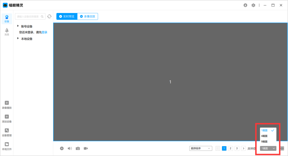 1、主界面右下角可设置多屏幕同时显示,支持1、4、9个屏幕,超出的部分需要切换下一页。