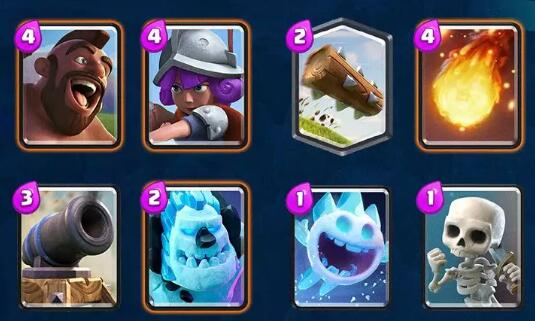这卡组的特点就是前期稳守。然后中期看准机会利用三枪的爆发力造成致命伤害。后期利用法术打本斩杀或者直接四枪+人海强攻。这套卡组是一紫三橙4白。价格低廉,卡牌获取容易。野蛮人房子是10级。其他卡片等级都是处于4811的状态。唯一的紫卡大闪电只有4级,已经足够去除10级的法师和火枪。在4500杯附近够用。