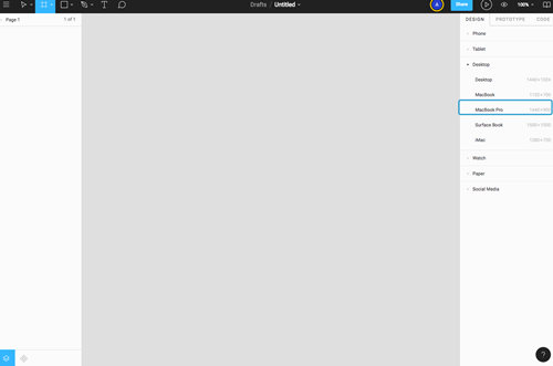 1、我们按下键盘上的 A ,呼出快捷键功能,创建一个画板,然后在右侧选择你喜欢的产品类型便能够得到一个对应的 UI 大小的网格。因为现在我们是要 redesign 少数派的首页,所以我们选「MacBook Pro」。