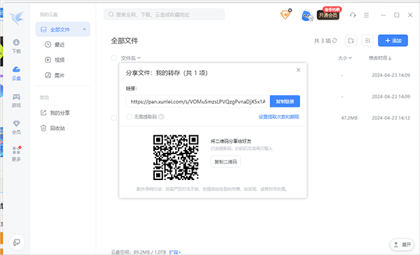 迅雷云盘电脑版是一个功能强大且操作简单的云存储工具,现在已经集成到了迅雷的PC软件里。打开客户端后,右侧有个“添加”按钮,点击就能上传文件或者从网上下载资源到网盘,特别方便。上传好的文件可以轻松分享,选中文件后设置提取码就能发链接给别人,安全性挺高。