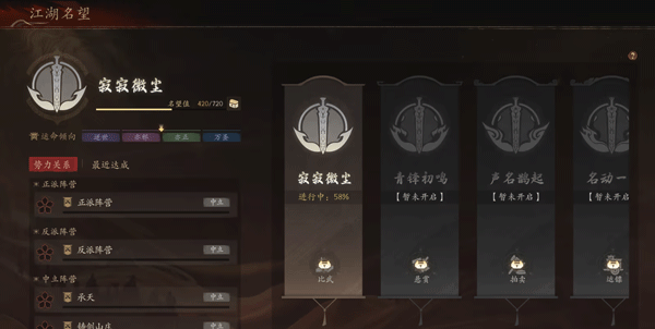 正邪各派分庭抗礼,明争暗斗合纵连横。名门大派的道义相邀需以诚相待,九流帮会的暗涌纠葛要善巧周旋。每一次与各派的往来结交、每一次关乎立场的抉择,都在为你铺就步步攀升的巅峰之路。
