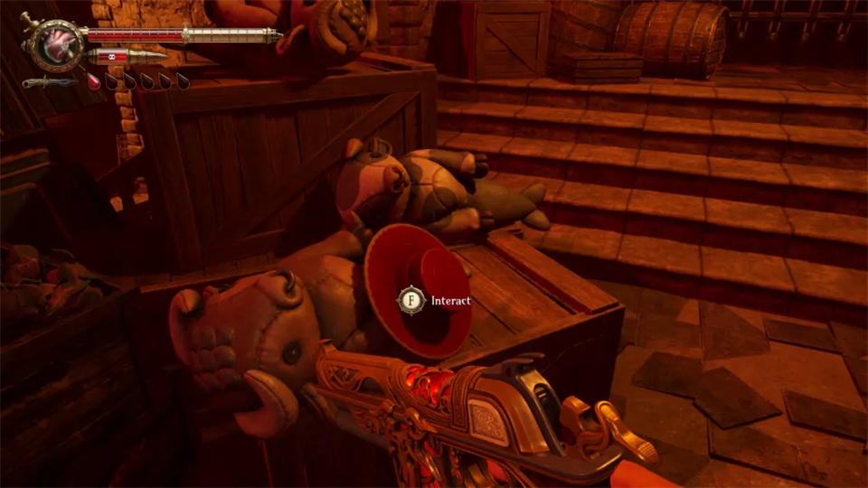 《炼魂之地:神偶剧院》是一款生存恐怖游戏,你的鲜血就是你的弹药。你扮演一名名叫加布里埃尔的士兵,踏上完成太阳神在神秘且致命岛屿托门托萨的神圣使命的旅程。