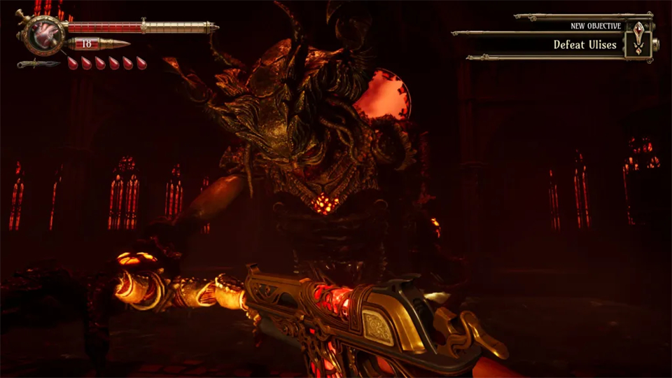 进入后,与面前的雕像互动,一系列过场动画将开始播放。过场动画结束后,与乌利塞斯的最终战斗将开始。