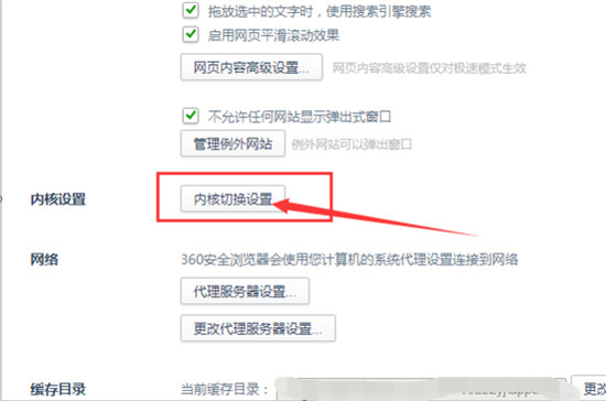 5、进入*设置界面后,点击页面中间的内核切换设置。