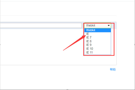 6、进入内核切换设置后,点击右侧的WEBKIT选项并选择需要兼容的IE浏览器版本。即可完成360浏览器的兼容模式的设置。