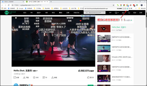 6、安装插件之后,只要页面播放就可以抓取到,点击下载即可,非常方便。