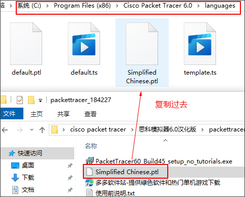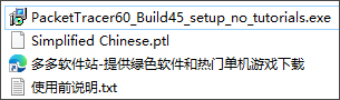 1、下载解压,得到思科模拟器6.0原程序+汉化补丁Simplified Chinese.ptl;