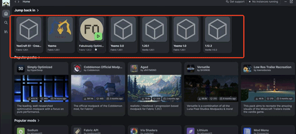 5、安装别的模组时可以在软件中搜索和通过推荐进行安装,安装后返回首页点击所在的版本进行游玩即可