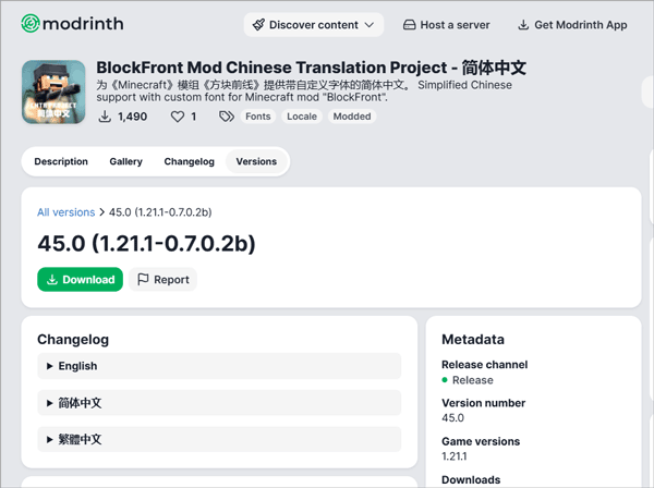 对于中文设置问题,虽然Modrinth客户端本身不直接支持中文,但玩家可以通过GitHub等平台下载已经汉化过的版本使用。另外,Modrinth还提供专门的中文模组供玩家下载安装,满足中文用户的需求。