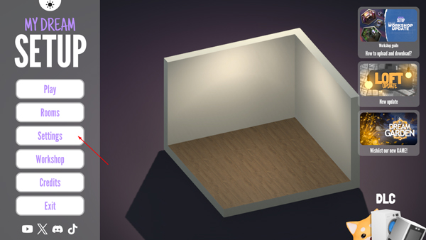 1、首先打开我的梦想卧室游戏,进入游戏后点击左侧settings;