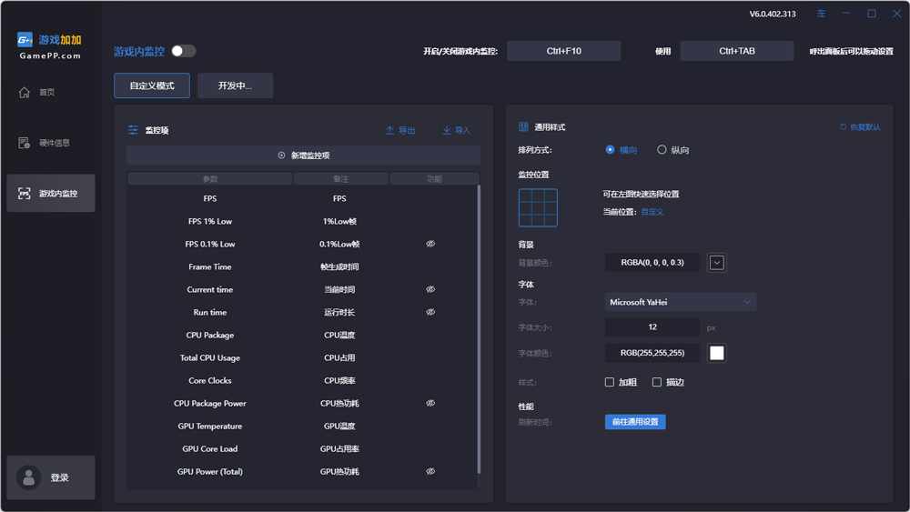 · 快捷键打开/关闭游戏内监控