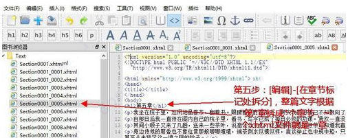 ⑥编辑-在章节标记处拆分。整编文字会根据第*章/节自动拆分成n个章节,一个XHTML文件就是一个章节。