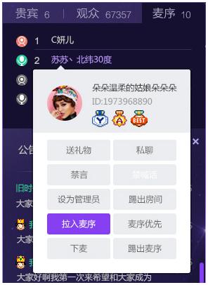 STEP1:直播间所属的签约主播在观众列表或贵宾席邀请拉入麦序后,就可以在麦序列表中看到邀请的人