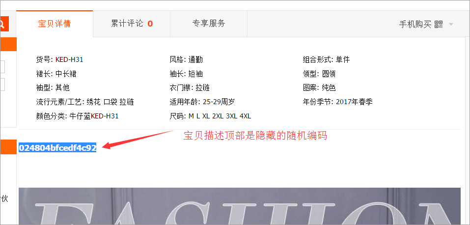 5、宝贝描述顶部已经增加了16位隐藏编码