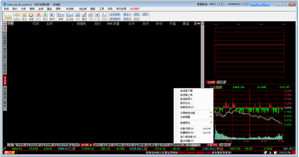 3、然后点击鼠标右键,拥有自选股下载、上传和导入三种功能