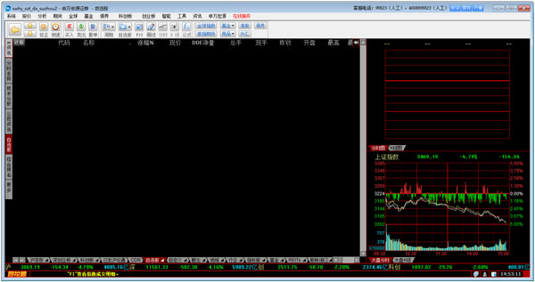 可显示自选股列表,通过功能键"添加、删除”进行自选股设置;可将自选股上下移动,可根据行情字段对自选股进行排序。