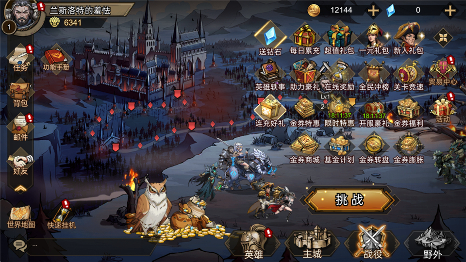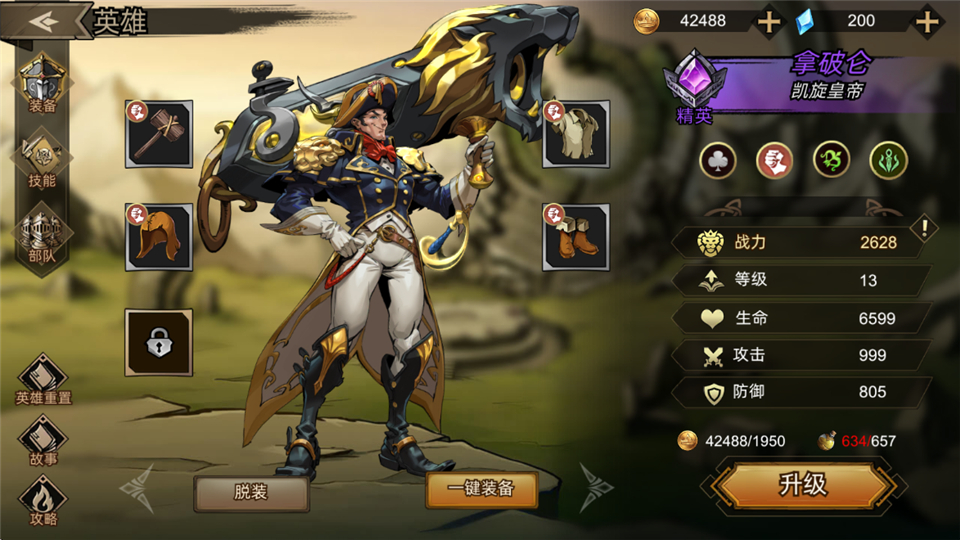 提升战力的方式还挺多的,比如升级英雄、穿戴装备、强化武器等等,还有通过关卡快速升级角色等级。游戏里有六个阵营,红桃、黑桃这些基础花色,还有鬼牌和王牌,布阵时不同阵营会有额外属性加成,挺有意思的策略性。