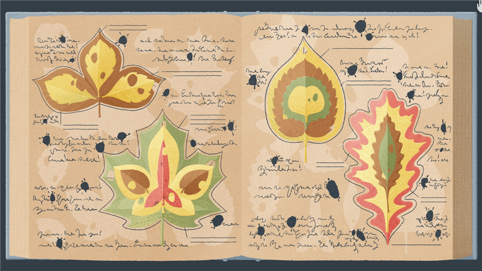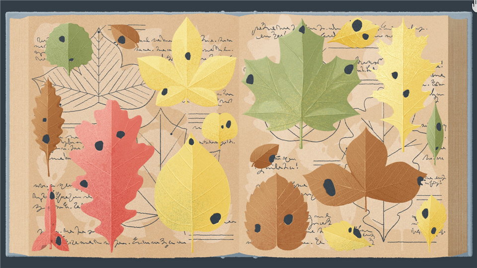 排列叶子,使叶子上的孔与墨迹对齐。