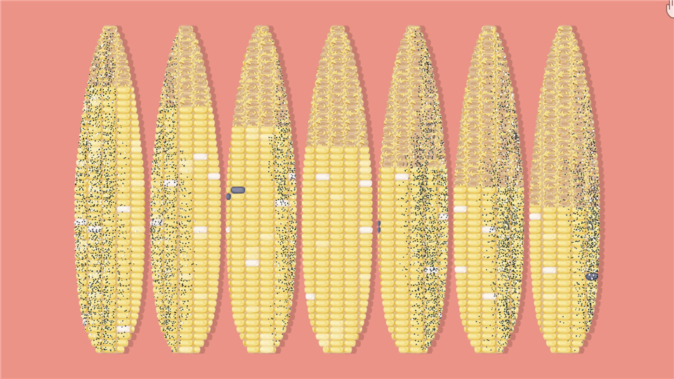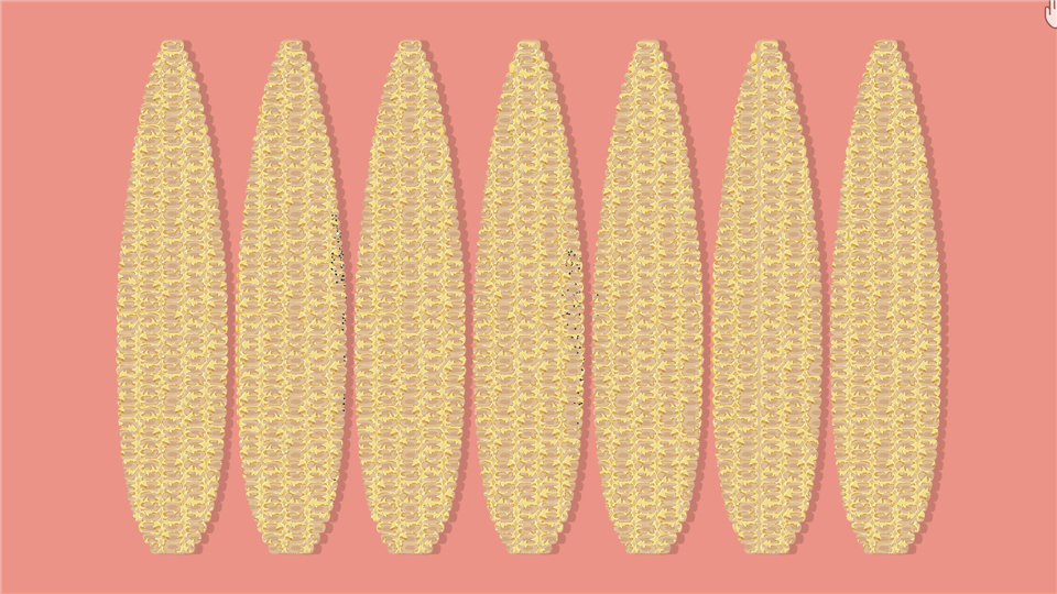 旋转玉米,使被吃掉的一面或者没吃的朝上。