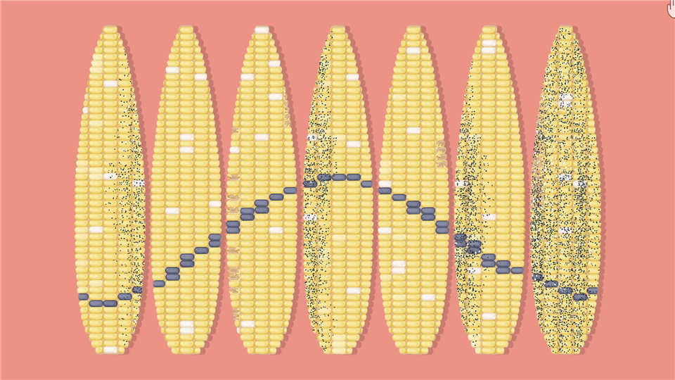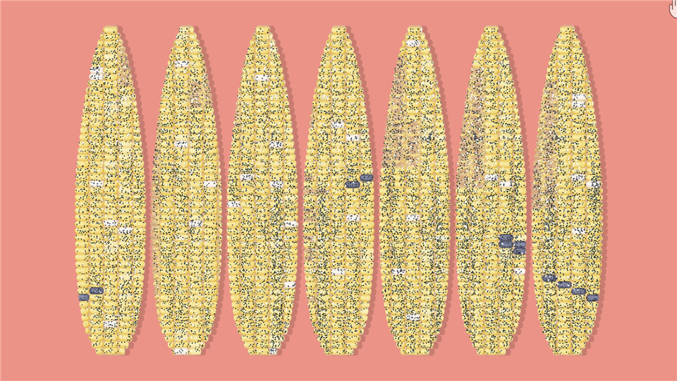 使黑色的玉米粒排列成一条线。