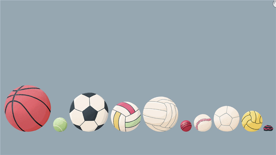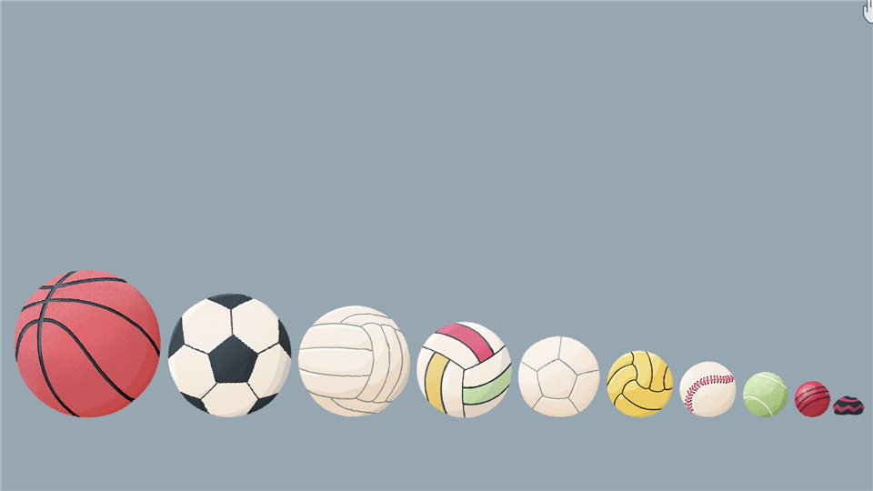 将球按弹跳力从大到小(或反之)排列,你可以拿起球扔出去,评估它们的弹跳力。