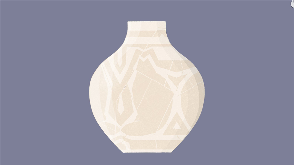 拿起左右两边的花瓶,用力摔碎,然后用摔碎的花瓶碎片重新组装中间的花瓶。