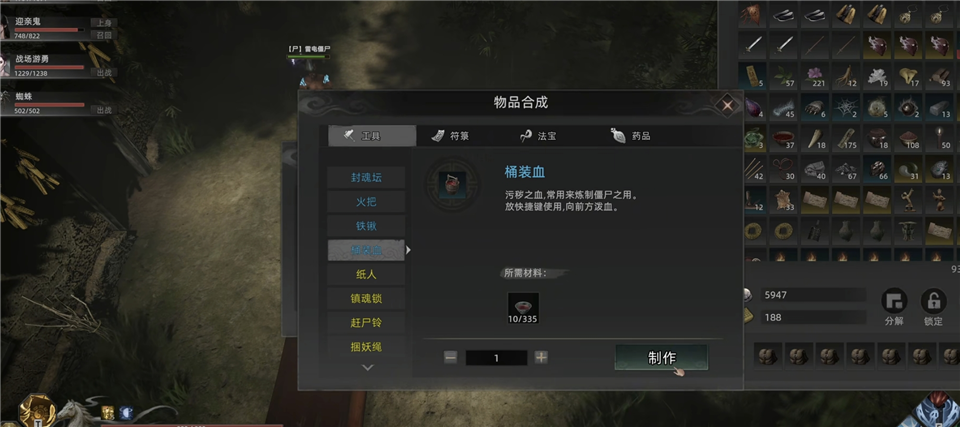 6、然后与棺材交互点击炼尸,就可以把尸体炼制成僵尸。
