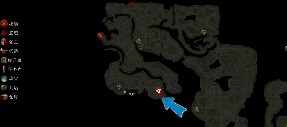 1、我们来到点翠庄下方,义庄右边这个位置。