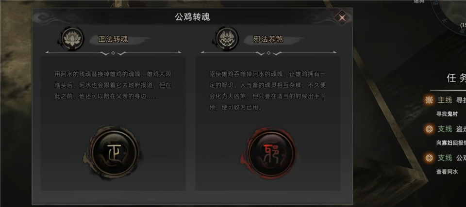 3、在做任务的过程中,选择让公鸡吞掉小孩的魂魄,就获得坐骑。