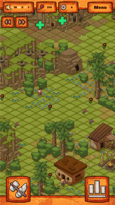 游戏的特色也很吸引人。你可以按照自己的喜好打造独一无二的洞穴部落,布置各种家具和装饰,甚至还能解锁几十种不同的建筑物。里面的角色设计得很可爱,动作也挺搞笑的,整体画风是石器时代风格,既复古又有现代感。再加上幽默的玩法和轻松的节奏,让人感觉特别治愈。