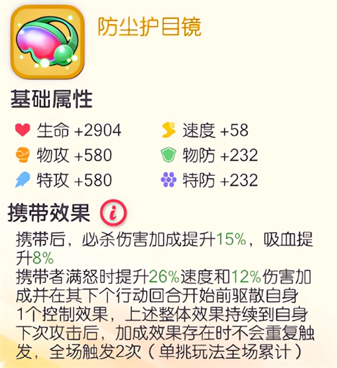 基拉祈专属,目前最好用的防御携带。触发效果很好,不突破都很好用。