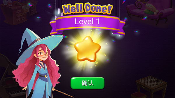 4、关卡结算界面还会显示玩家的星星奖励,点击确认即可继续。