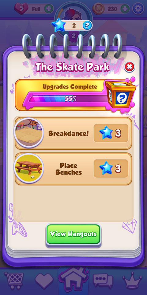 加入团队的旅程,让单调的休息室焕然一新,还要扩展滑板天堂运营基地。爆炸消除格子,破解免费谜题,完成消除游戏关卡,并解锁独特的物品来装饰聚会场所。