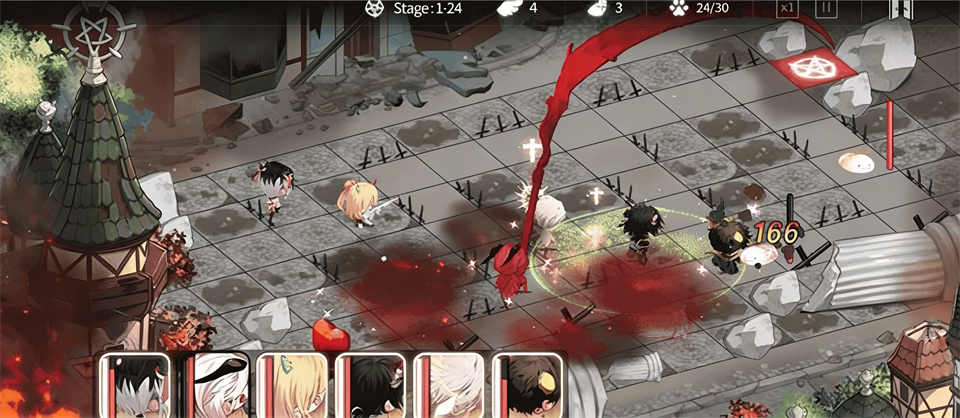 战斗前需要选择最多6个恶魔上阵,每个恶魔都有独特的技能和属性克制关系。比如“骑士的绝对盾牌”能为队友提供HP恢复,“黄金的代价”召唤巨大拳头攻击敌人,“鲜血就是力量”则召唤镰刀造成大范围伤害并让敌人流血。这种战斗策略玩法让人想起升级版的植物大战僵尸。