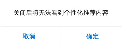 5、选择【确定】即可关闭个性化推荐功能,后期想要打开的话也是一样的步骤。