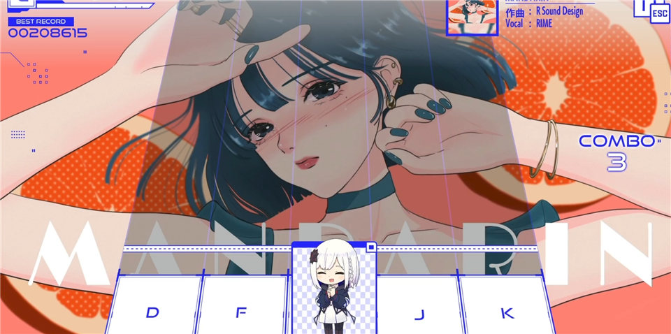 设 EASY、NORMAL、HARD、PRO 四档,PRO 难度含三键同按等进阶谱面,新手入门、高手挑战皆宜。