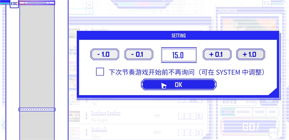 在将音符掉落设为最高速的状态下通关任意歌曲。