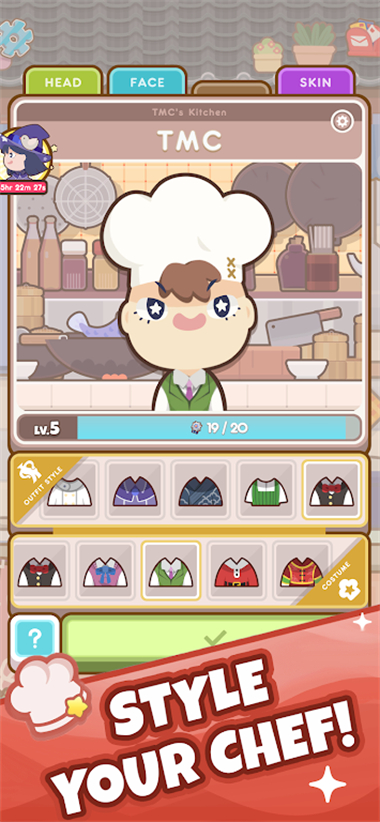 别忘了打造时尚的烹饪风格!你的可爱厨师可以定制各种帽子、服装、发型和面部表情,让你看起来和你的菜肴一样赏心悦目。
