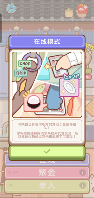 与来自世界任何地方的其他2名厨师组队!你将需要独特的请求系统来代替交流,所以建议你先通过其他模式来学习游戏!