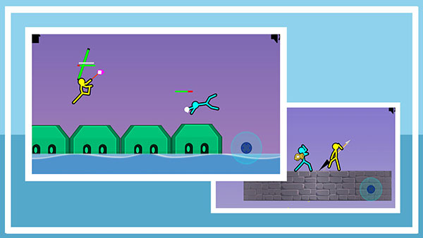 2、开始战斗之后,屏幕上会出现两个虚拟摇杆,分别控制着两位火柴人角色。