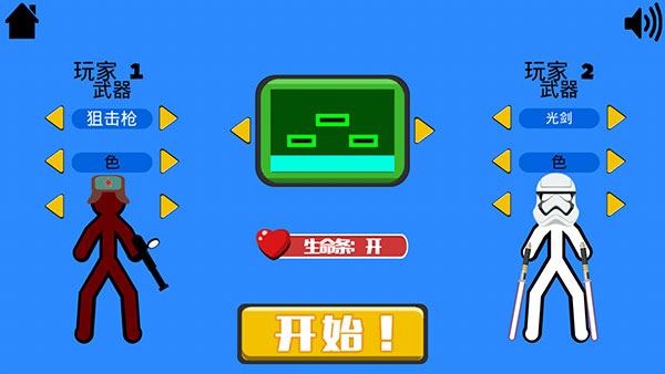 游戏里有很多有趣的玩法,比如单人对战电脑或者双人同屏竞技,还能自定义角色的外观、武器和地图。战斗过程中可以使用各种武器,甚至还有滑稽的乐器,攻击方式多样,乐趣无穷。背景音乐也很欢快,配合着卡通化的场景,视觉体验很舒服。