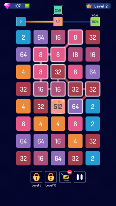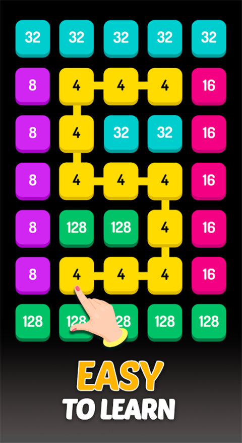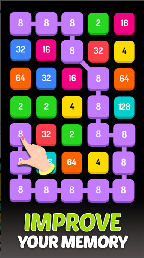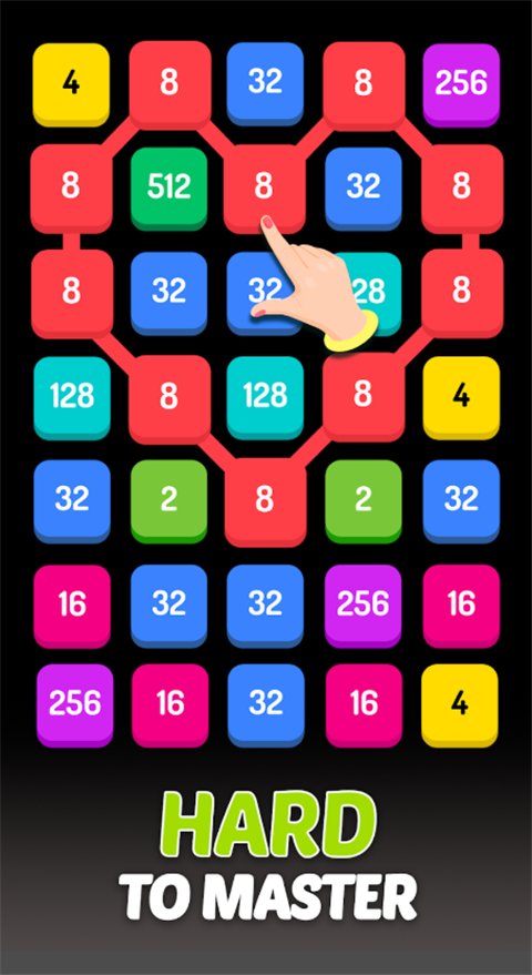 1、沿八个方向(上、下、左、右或对角线)滑动并连接相同的数字方块,即可合并数字。
