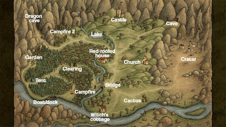 在最东北角,你会看到熊洞。制服熊的方法有很多,但最直接的方法是在左轮手枪上装填橡果以驱赶熊。你可以之后从洞穴里取回国王的钻石。