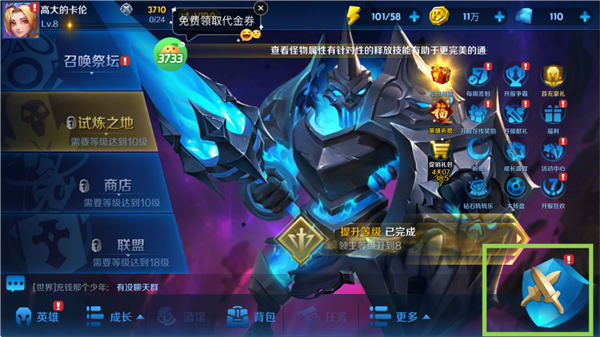 3、创角兑换礼包100连抽,闯关再送100抽,海量英雄抽卡爆率超高。