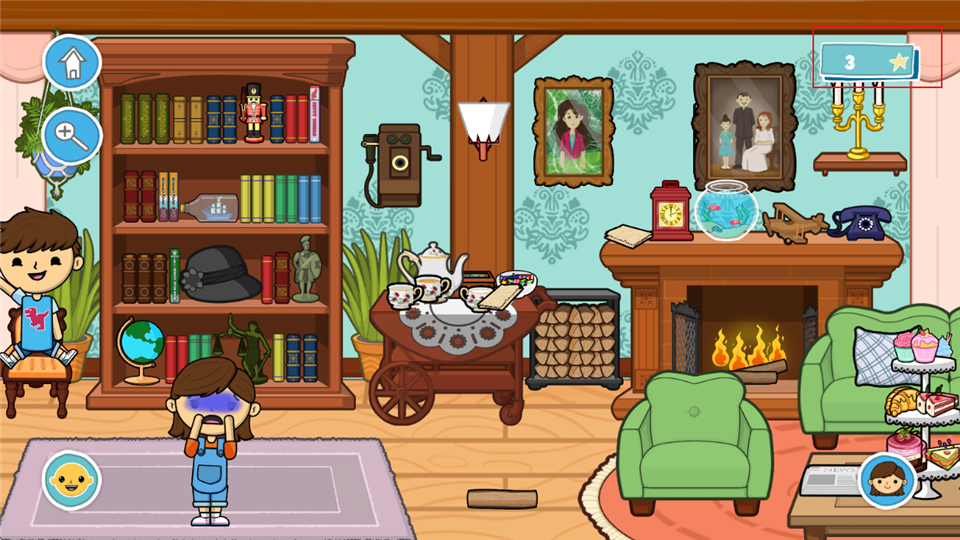 我最喜欢的是可以自由探索小镇的不同地方,比如客厅、厨房和图书馆。每个场景都有很多细节,感觉像在玩一个真实的娃娃屋一样。而且游戏里还有收集任务,这样能增加不少乐趣。操作起来也挺简单的,连换角色的表情和动作都不难,一看就会。
