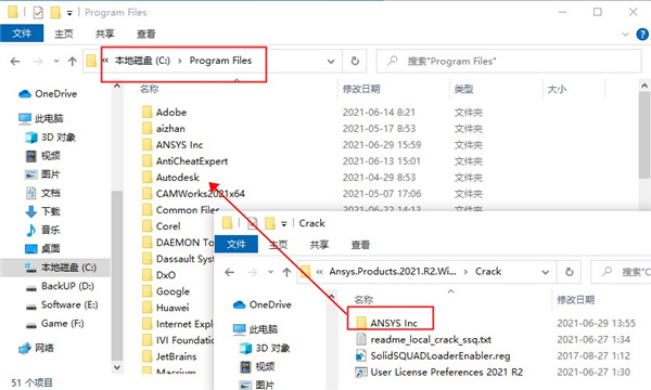 11、接下来我们开始安装,将文件夹中的ANSYS Inc文件夹复制到Program Files软件的安装根目录中,并进行替换整个文件夹;
