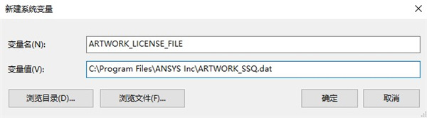 变量值:C:\Program Files\ANSYS Inc\ARTWORK_SSQ.dat