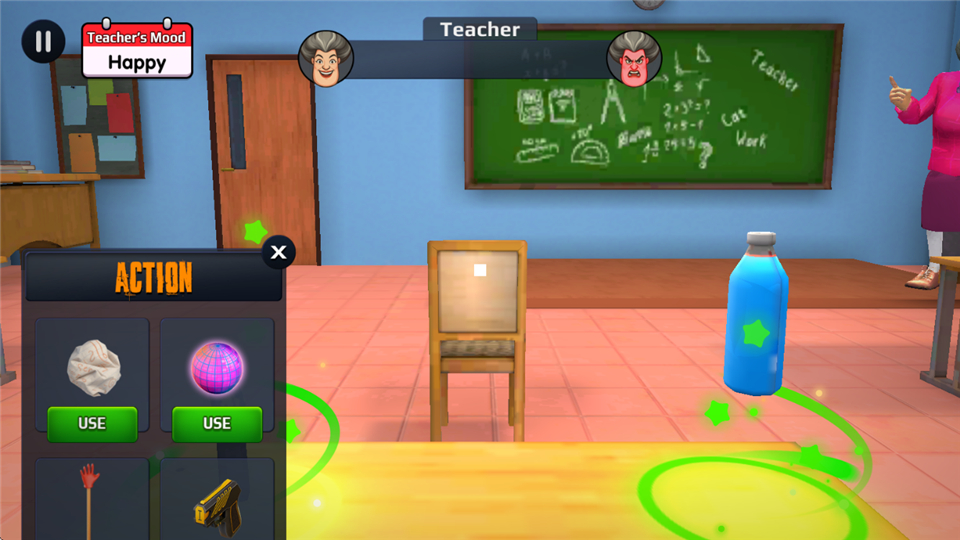 3、选择道具瞄准老师丢过去;