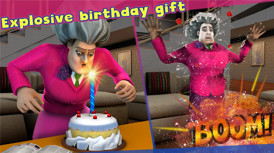 恐怖老师是一款挺有意思的3D冒险游戏。玩家扮演学生潜入Miss T的家中,通过布置陷阱和恶作剧吓她,同时要躲避被抓,最终成功逃离。游戏里有很多场景,比如厨房、卧室、地下室,每个地方都有谜题需要解开,找到道具和钥匙才能继续前进。