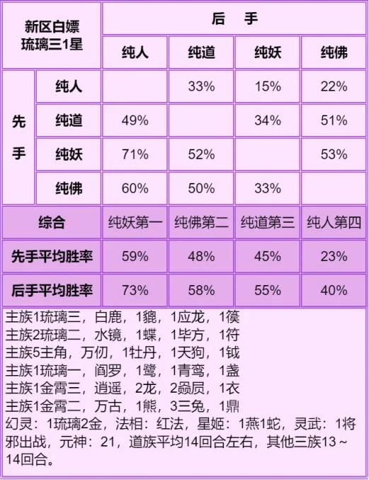上方说的回合都是神仙局回合,别把幻仙回合给算进去。玩的种族符合优势回合却打不过别人也别怪种族,大概率是自身的搭配以及配置原因。